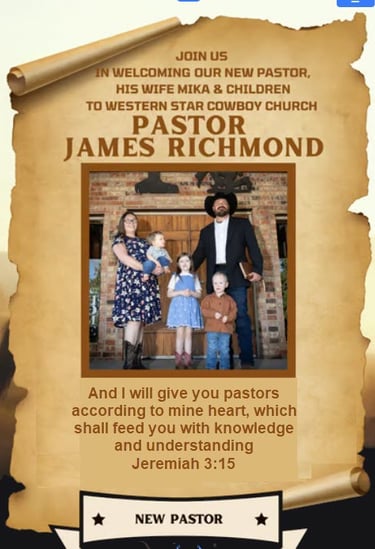 The mission of the Western Star Cowboy Church is to reach the Rural/Western heritage community and those who love its culture, for Jesus Christ. In following with the great commission (Math 28:16-20), this church embraces that culture and seeks to remove barriers that have traditionally kept those within the culture from being reached with The Gospel of Jesus Christ.